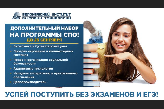 Воронежский институт высоких технологий объявляет дополнительный набор на программы среднего профессионального образования!